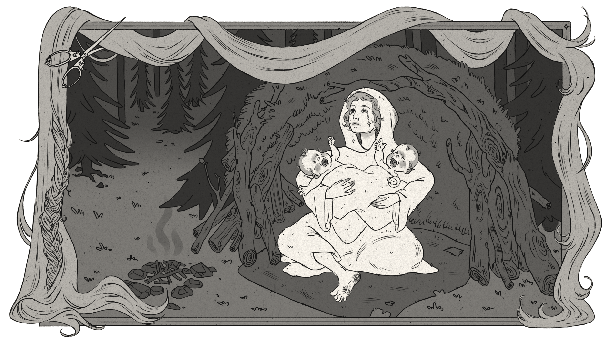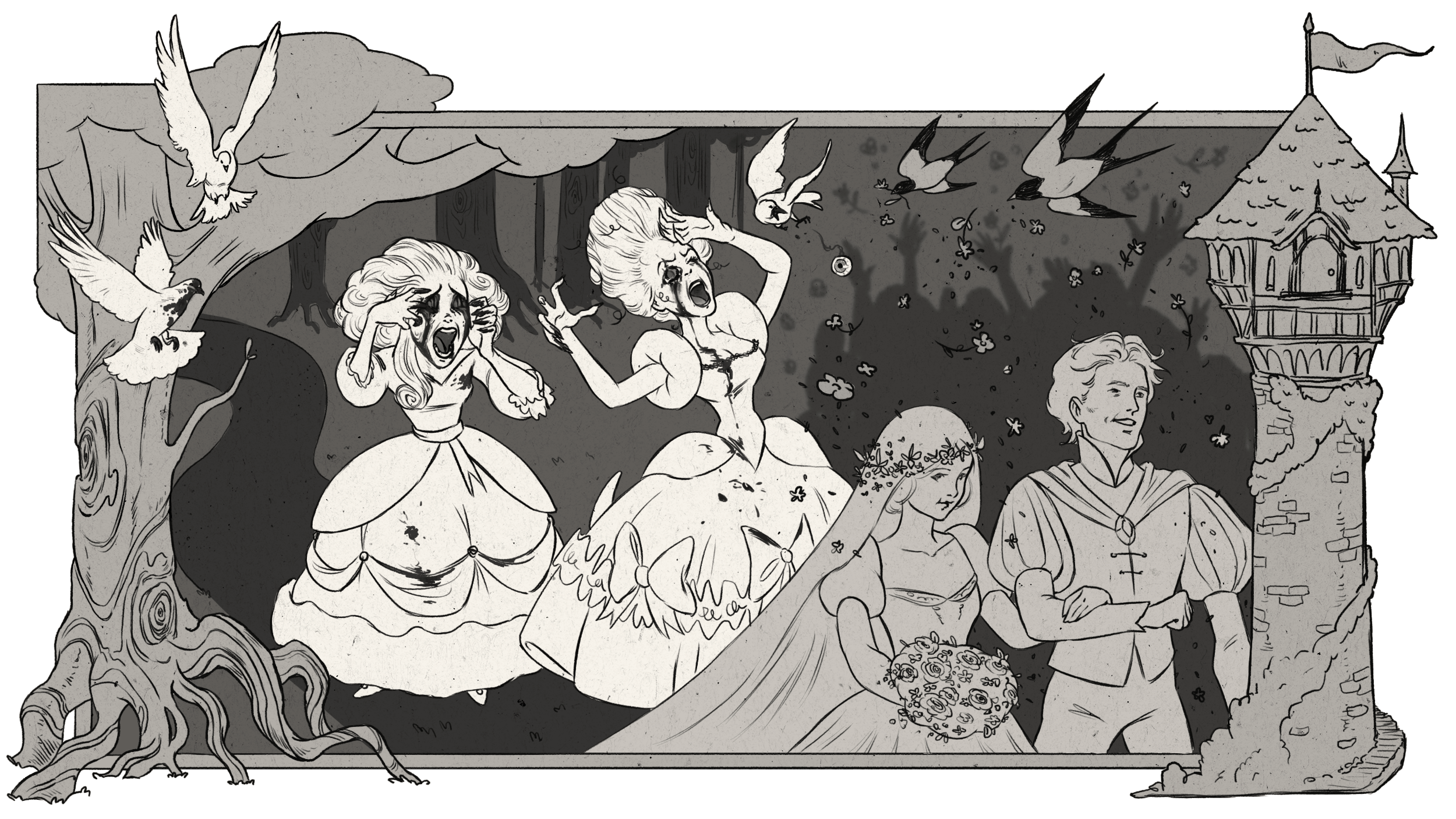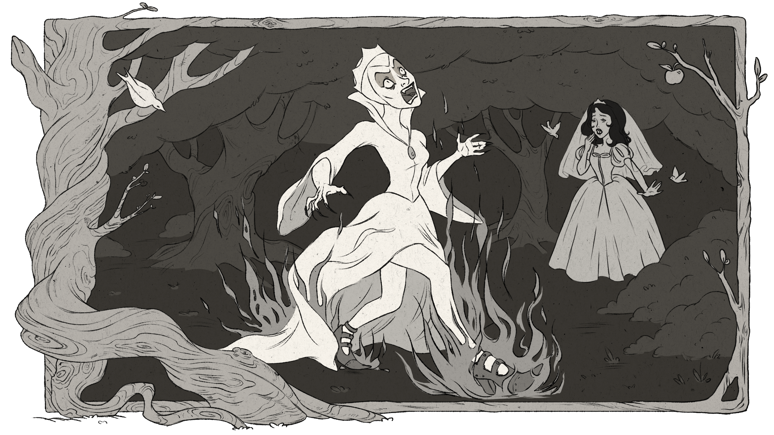 Illustrationer af Brødrene Grimms mørke versioner af de klassiske eventyr; Askepot, Den Lille Havfrue, Rapunzel og Snehvide. Til brug i Engelsk fag for udskolingen.