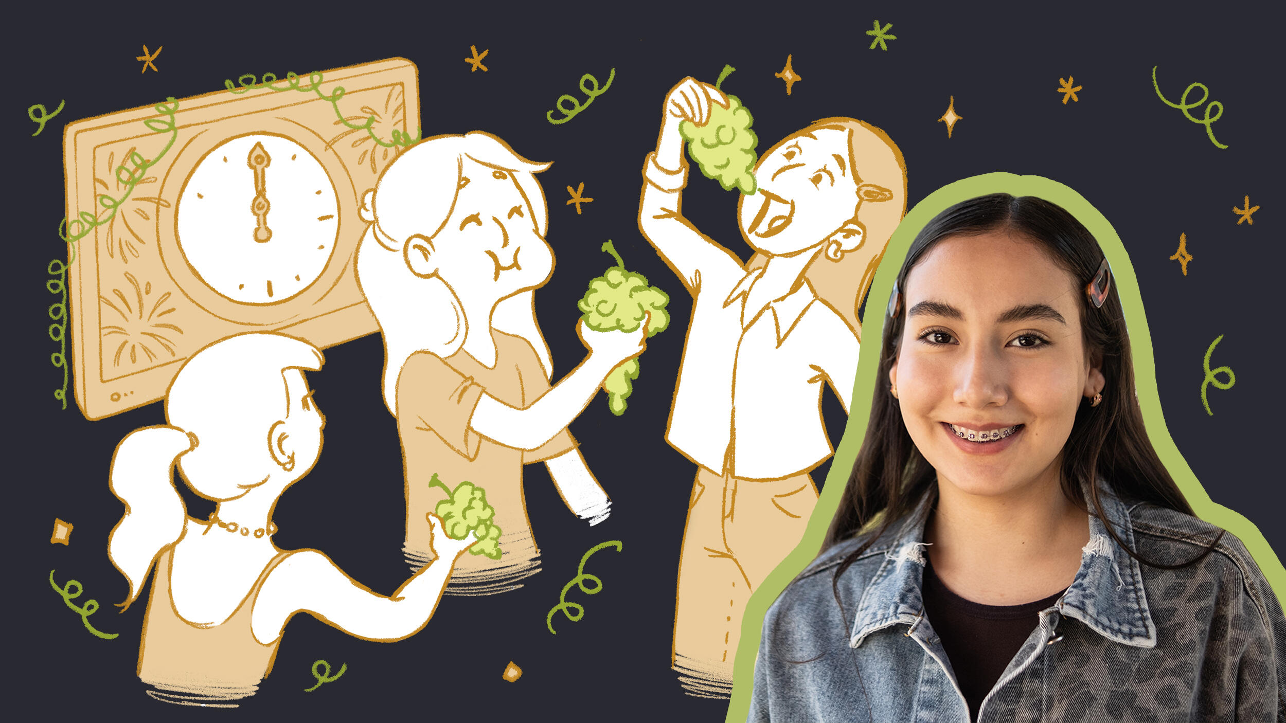 Illustrationer af nytårstraditioner i forskellige lande til brug i sprogfag for 6.-7.klasse.